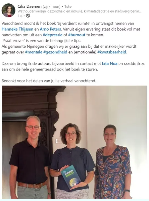 23 augustus 2022 LinkedIn post van wethouder Daemen (Nijmegen)