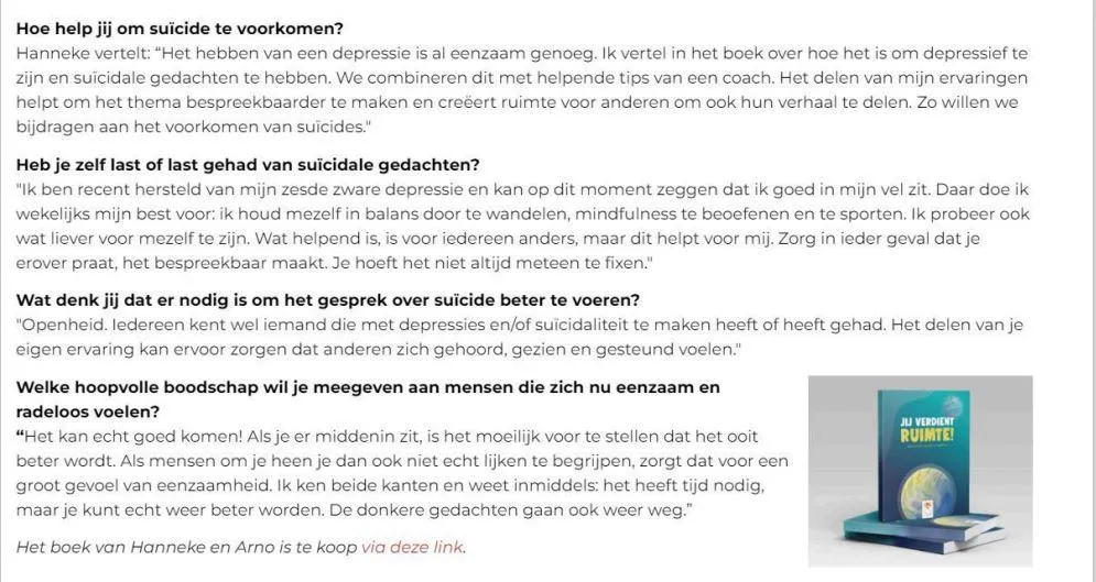september 2024 Interview Hanneke, 113 zelfmoord preventie